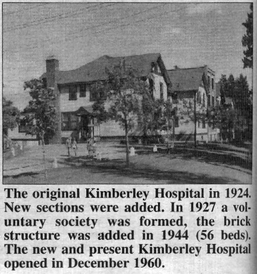on 2nd avenue at town-site and the Kimberley Hospital was built. Lights