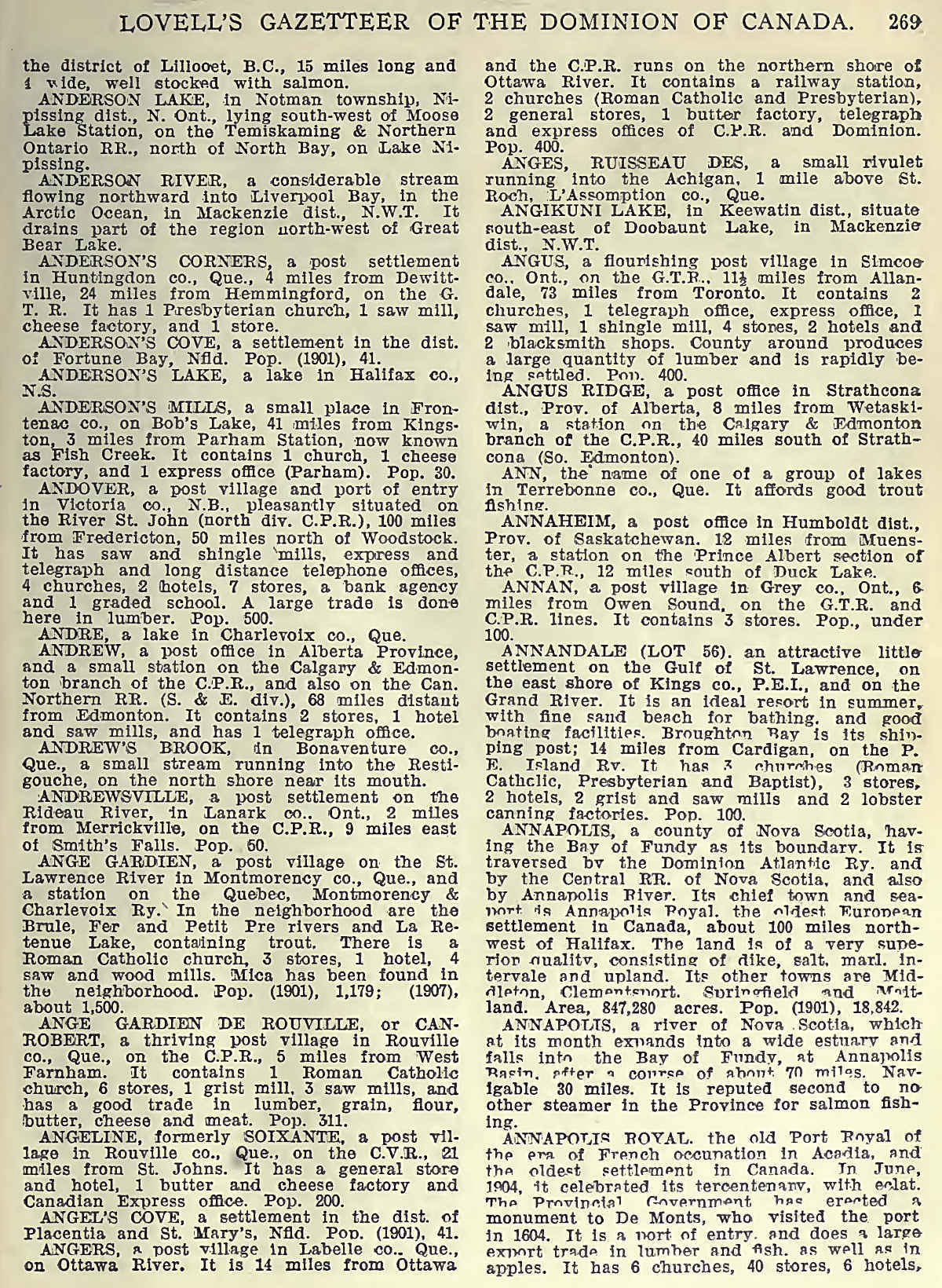 Angus, Angus Ridge, Ann, Annaheim, Annan, Annandale, Annapolis,