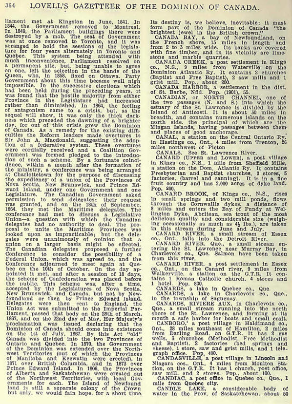 Canada, Canada Bay, Canada Creek, Canada Harbor, Canadian or North