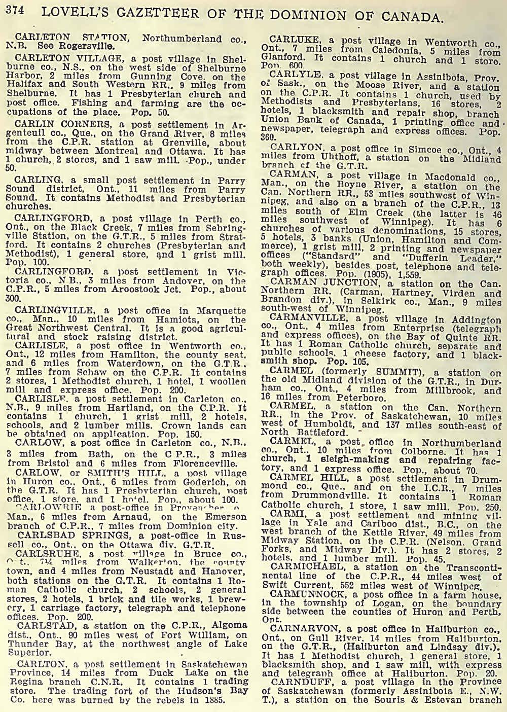 Carlsruhe, Carlstad, Carlton, Carluke, Carlyle, Carlyon, Carman,