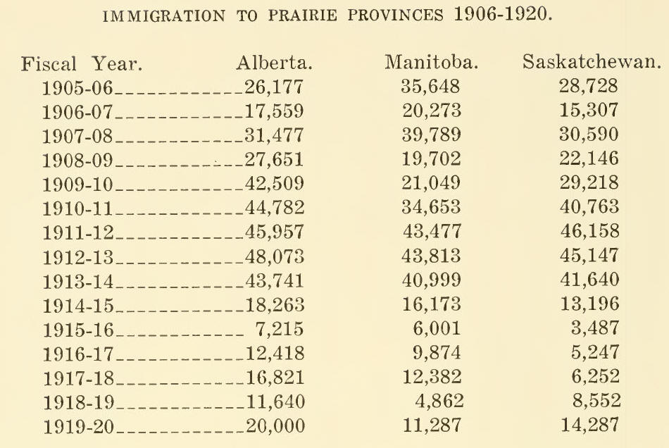The rapid increase in the population of Alberta is due principally to immigration. According to the census of 1916 there were only 125,603 persons resident in the Province at that date who were born in the Province. Since the formation of the Province, Alberta has drawn a larger immigration than any of the other Prairie Provinces, as the following returns will indicate: