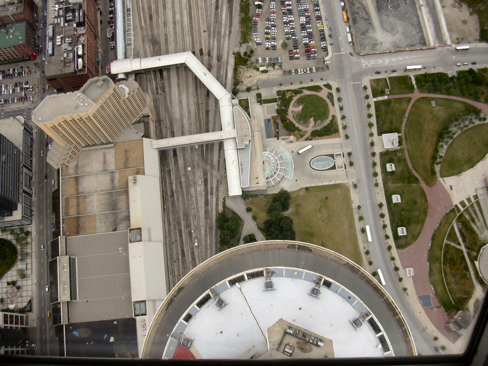 Note the running track on the skyscraper on
